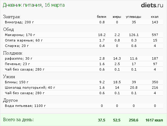 калорийность макарон отварных- в среднем 120калорий на 100г т.е. на твои 170г- всего 204 калории, а не почти 600!!!!!!!!!!!!! можешь смело вычёркивать из вчерашней калорийности- 400калорий!!!!!!!!!!!!!!!!