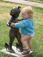 Бабушка которая вяжет носок, Девочка надувающая мыльные пузыри, Дворник с кошкой.