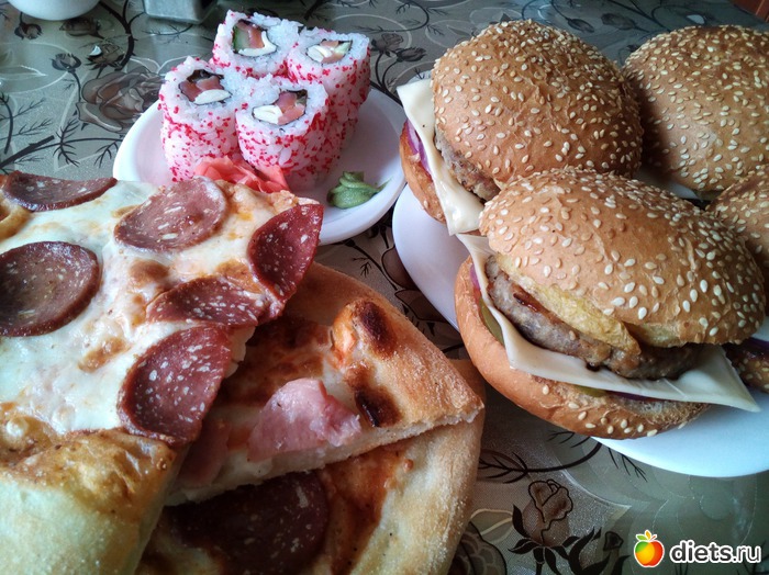 Но только один приём пищи. Я ем пиццу, роллы, гамбургеры или шоколад, всегда по разному, но я не ем это ВЕСЬ ДЕНЬ. Считаю, что это не совсем правильно