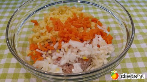 фарша у меня было грамм 350, как написала 2-3 средних картофелины, луковица 1 и небольшой кусочек тыквы, в граммах ничего не взвешивала.