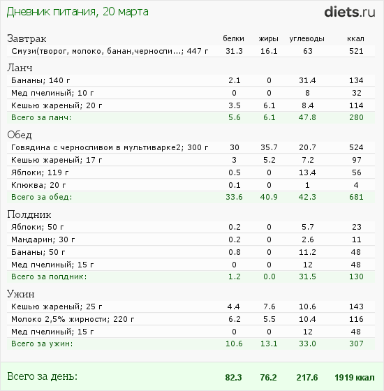 Калорийность продуктов