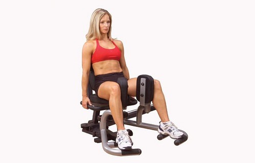 5. Тренажер, где надо носками качать тяжелую штуку, которая у тебя на коленях лежит. Один маленький блин и один большой, я не знаю, сколько это в сумме.