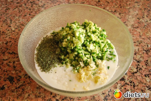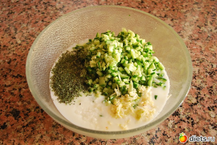 Огурец мелко нарезать как сделала это я или натереть на терке, выдавить