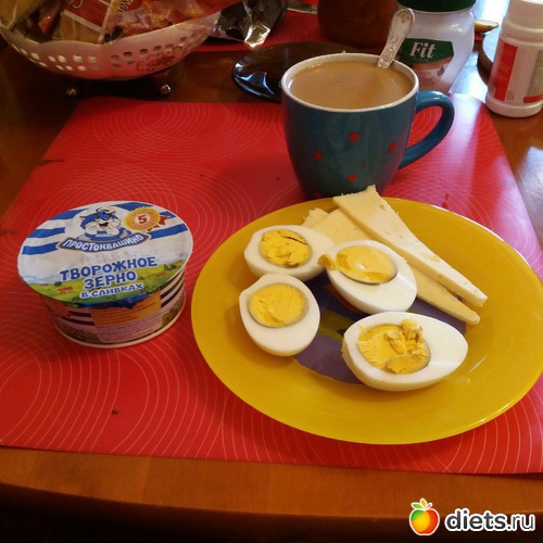 Творог зернёный, 2 яйца, сыр, кофесливки. Всё как вчера, никакой фантазии
