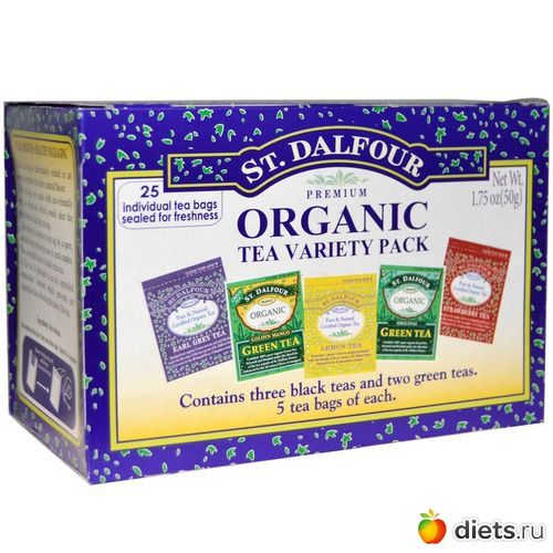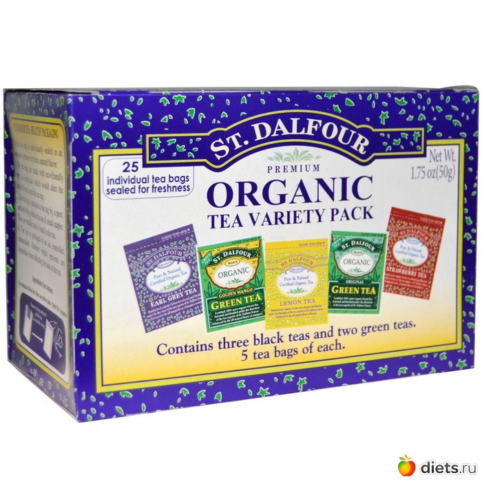 St. Dalfour, Органический чай с разными вкусами, 25 чайных пакетиков, 1.75 унций (50 г)