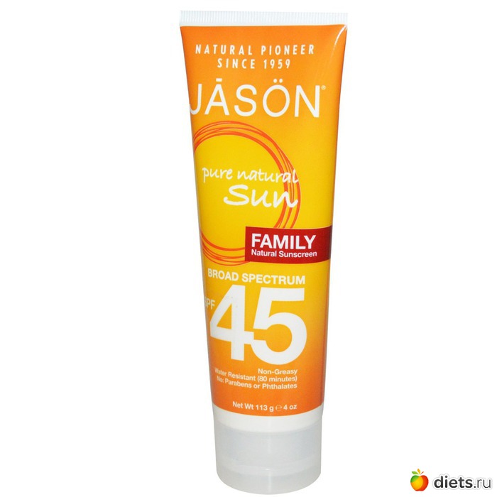 Jason Natural, Семейный природный солнцезащитный крем, SPF 45, 4 унции (113 г)