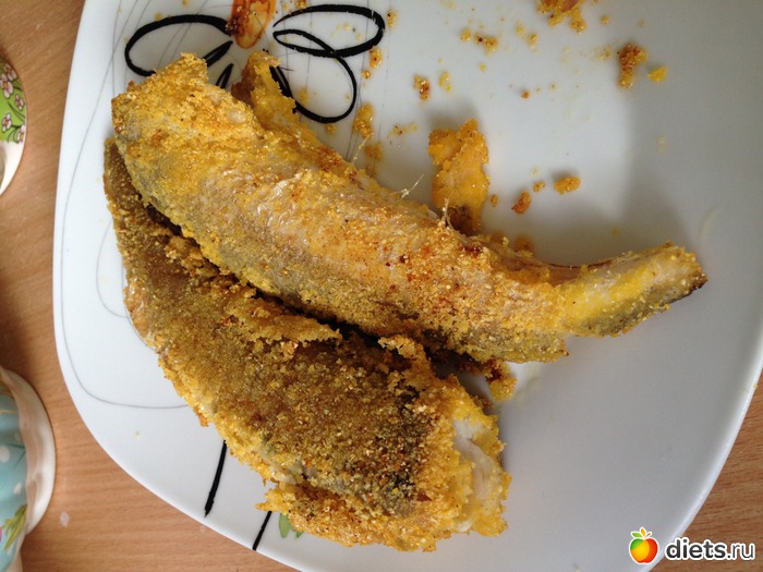 Завтрак: два хека больших жаренных в кукурузной муке.