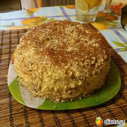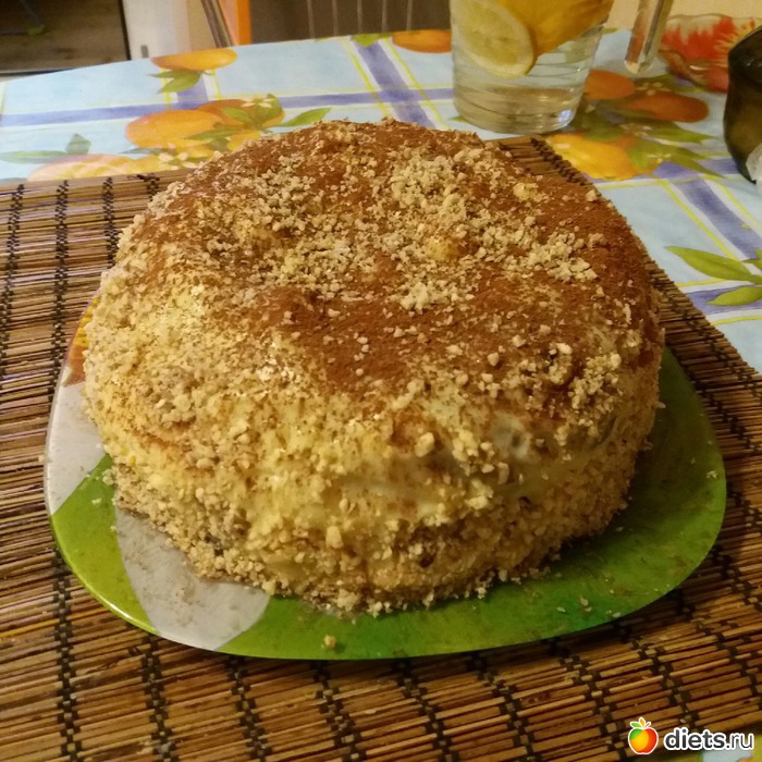 . Украсила какао и толчёным грецким орехом, получился типа торт.