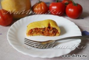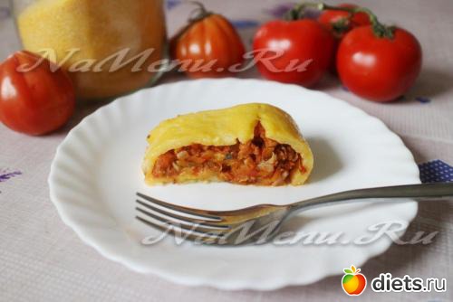 Предлагаю вам рецепт приготовления постного рулета из поленты с овощами. Овощи можно выбрать любые на ваш вкус. Главное - выпарить лишнюю влагу из овощей, чтобы начинка не была водянистой. Хотим напомнить, что в прошлый раз мы готовили рулет из поленты с мясным фаршем.