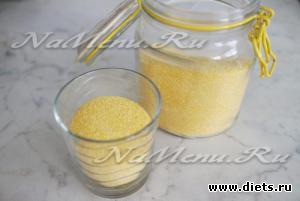 Начнем с приготовления поленты. Поставим на огонь кастрюлю с подсоленной водой, доведем до кипения. Отмерим необходимое количество муки.