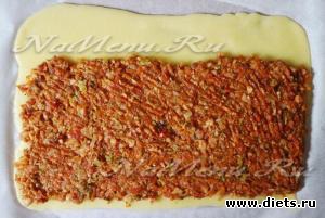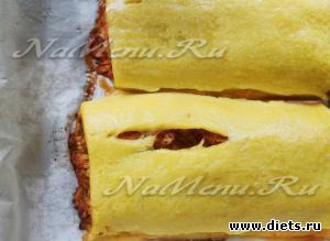 Отправляем рулет с овощами в духовку запекаться в течение 20 минут при 180 градусах. Поверхность рулета чуть зарумянится.