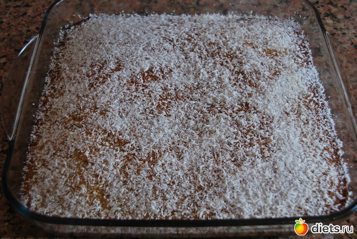 Подавала, посыпав кокосовой стружкой.