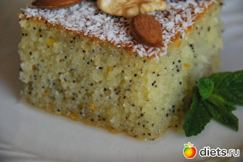 Без мака и цедры но верх украшают взбитыми сливками и посыпают орешками.