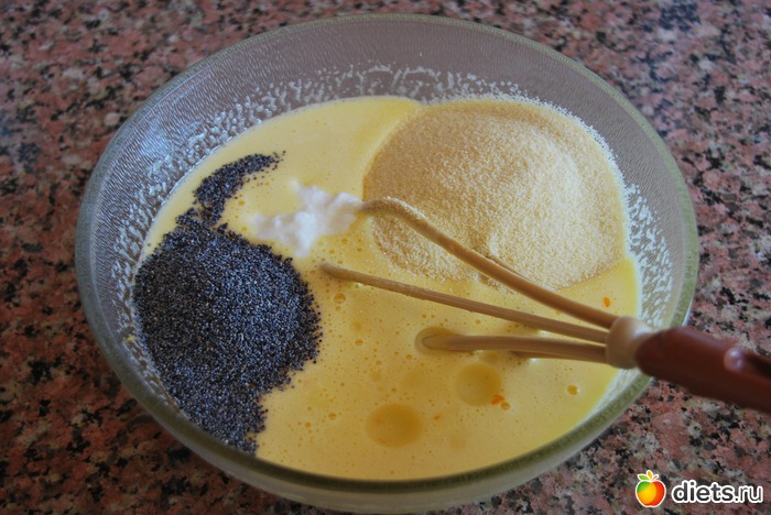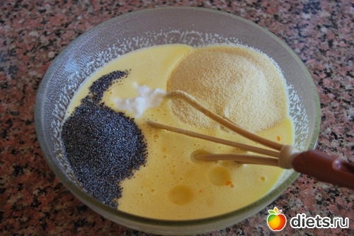 Манка, мак, йогурт, масло, перемешиваем.