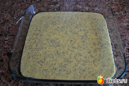 Тесто должно получиться как на обычный пирог.Я выпекала в квадратной форме,диаметром 22 см.
