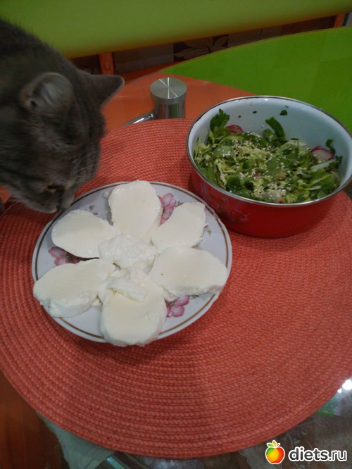Надеюсь, что разные виды белка за день, еще и большой шарик моцареллы на ужин не дадут привеса. Завтра отношусь по результату