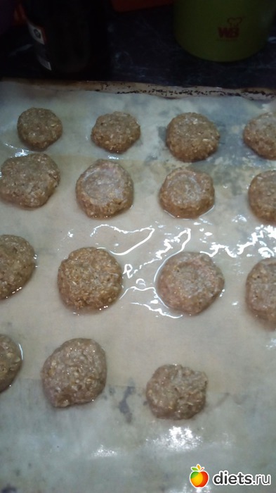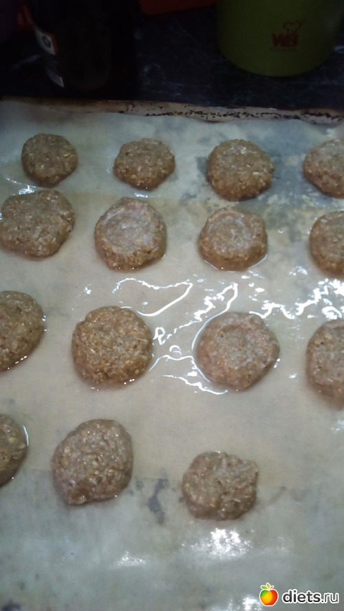 На противень постелить бумагу для выпекания. Скатать мокрыми руками шарики из теста, размером с грецкий орех, приплюснуть немного и выложить печенье на противень и отправить в духовку на 15–20 минут, до легкого зарумянивания. Печенье в процессе выпечки поднимется и немного увеличится в размерах!