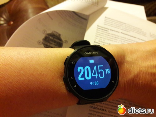 А, чуть не забыла похвастаться новым девайсом, только сегодня утром опробованным, это беговые часы garmin forerunner 235! Подарок сына мне на ДР, вчера только курьер привез: