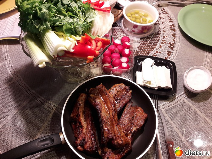 А это стандартный поздний обедОнЖеУжин выходного дня, меняется только вид мяса гриль, иногда на рыбу: