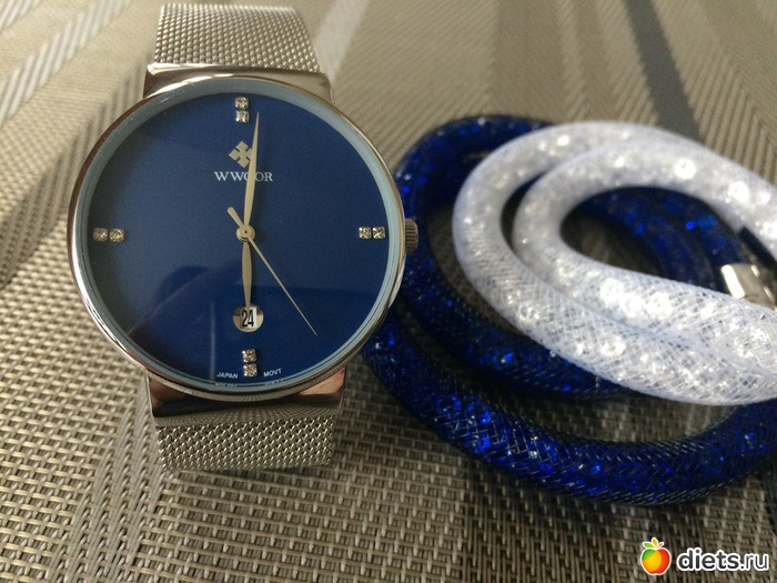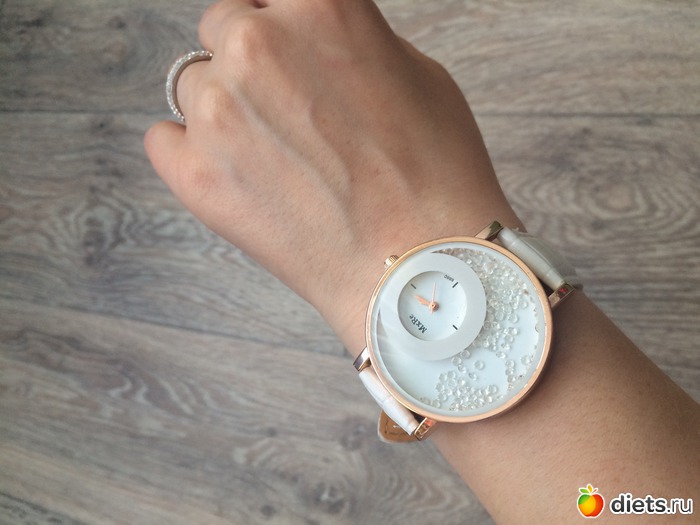 Эти ношу чаще всех. Добирались до меня около месяца. Не трекались. Браслет пришлось регулировать (убирала 4 звена)Сейчас цена на них ок. 140 руб. У прода представлено в 3-х цветах. Золото, серебро и розовое золото.