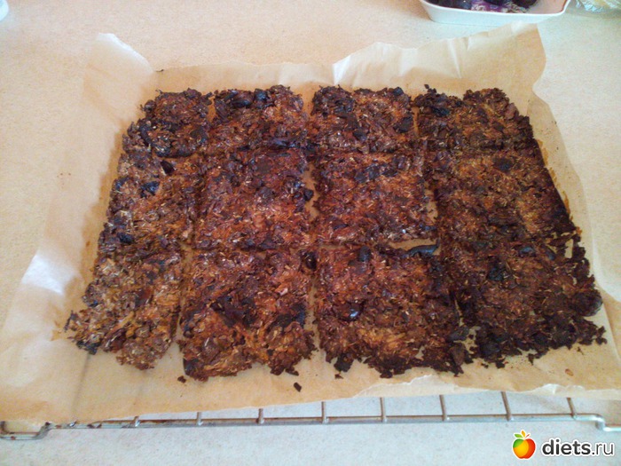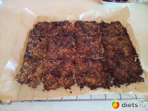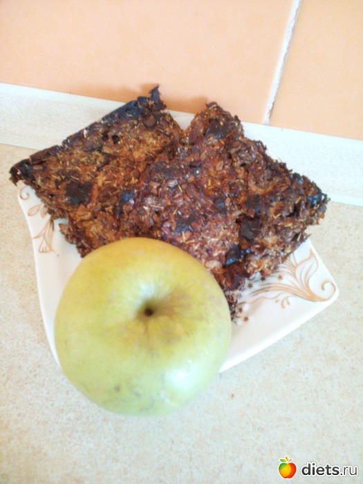 Я патента два больших яблока, порезала штук по шесть чернослива, фиников + 4 грецких ореха, насыпала клетчатки, пару стол.ложек льна и льняные хлопья - все смешала и на противень. На 120 градусах в духовку на часок.