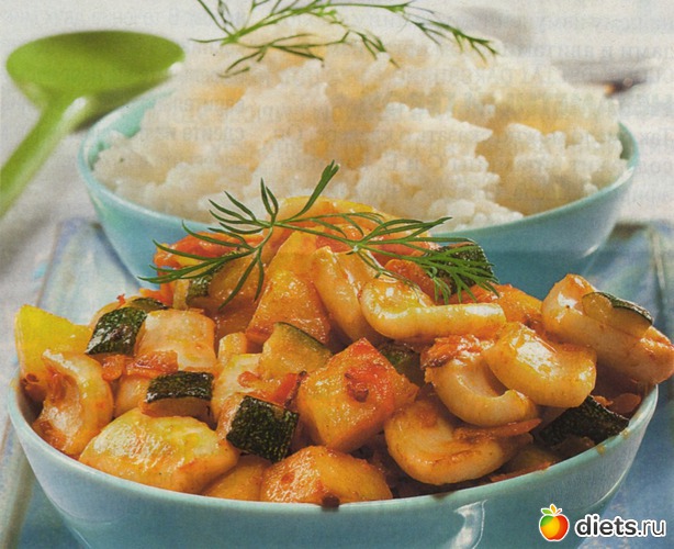 1 Кальмары почистить, промыть холодной водой и нарезать небольшими квадратиками. Варить 3 мин в кипящей подсоленной воде, затем откинуть на дуршлаг.