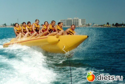Под конец нашего полуголодного, но активного и веселого отпуска, Наташка решила шикануть, и прокатиться на банане. Нужно сказать, раньше я никогда на этой желтой махине не каталась, но со стороны это выглядело не очень безопасно. И мы решились.