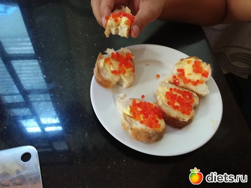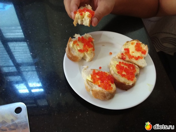 А на ужин съела грамм100 креветок с кальмарами поджаренные на слив масле, только в холодном виде, 1 ложечку красной икры и чай со сливками.
