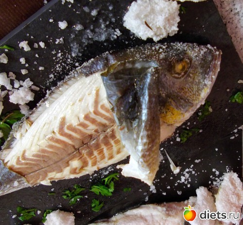 Я просто потом поливаю водой и вызволяю рыбу,в тарелке снимаем кожу и внутренности.Мясо получается таким сочным,что не сравнить с другим видом готовки.