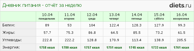 предыдущая неделя план 1760 ккал факт 1753 ккал,