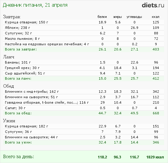 О чем я- меню надо пересмотреть в сторону увеличения количества калорийности на ужин