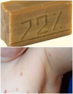 Хозяйственное мыло — довольно известное и эффективное средство для лечения папиллом. Для этого каждый вечер нужно обильно натирать новообразование мылом. Через несколько дней кожа под папилломой покраснеет — это значит, что начался процесс ее заживления и использовать мыло больше не стоит. Спустя несколько дней новообразование засохнет и отпадет.