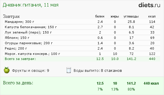 Среда: в течение всего дня любые фрукты из перечисленных ранее, любые вареные овощи, салаты в любом количестве, в любое время.