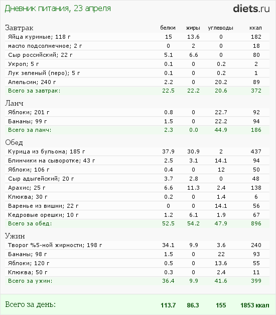Калорийность продуктов
