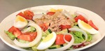 Все овощи и зелень промываем, яйца отвариваем вкрутую, тунец открываем и сливаем. Подготовленные листья салата нарезаем соломкой, помидоры - дольками, огурец — на 4 части вдоль и на небольшие кусочки поперек, укроп, зеленый лук и петрушку — мелко. Выкладываем в миску. Кусочки консервированного тунца разделяем вилкой, подготовленные яйца нарезаем кубиками и выкладываем в миску к овощам с зеленью. Добавляем в ароматный салатик йогурт, соль, перемешиваем и сразу подаем.