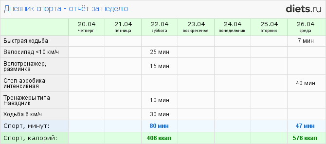 Спорт: 40 минут СТЕП, 7 минут беговая дорожка.