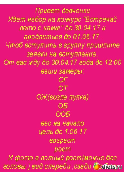 Девочки, кто еще хочет участвовать жду сегодня до 12:00 фото и замеры