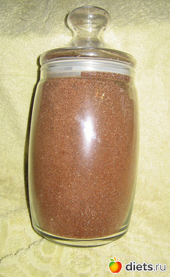 основной ингредиент - молотый кофе, раньше брала спитую гущу, теперь перешла на "неиспользованный" пачка 240 гр, цена вопроса 60 гривен, корица, 50 гр, соль морская, молотая на кофемолке...2 крышечки этой самой кофемолки, ламинария (сушеные водоросли), те же 2 крышечки молотых, дальше пошли масла: зародышей пшеницы, зеленого кофе, ЭМ грейпа, пачули, пару капель витамин Е в масле (я его везде пихаю )))