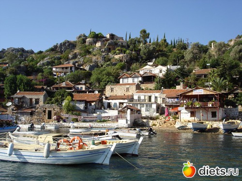 Яхта – скорее всего мы проведем один день на яхте. Это уж совсем по-обломовски – валяться на яхте, смотреть на море, купаться в бухтах.. Будем жить красиво одним словом). Если мы возьмем яхту в заливе возле Демре (где расположена церковь Св. Николая), то мы сможем на этой яхте обозреть также затонувший ликийский город Кекова, городом это, конечно, сложно назвать, но и тем не менее, это очень живописно. Мы также сможем посетить деревушку Симена, которая расположена на склоне горы. Крайне притягательное место. Я ее обнаружила пару лет назад, вид с яхты настолько меня поразил, что я захотела приехать именно в саму деревню. Оказалось, что там обитают в основном творческие туристы, в частности художники и писатели. Оно и не удивительно, в таком месте, должно быть, творчество находит свое воплощение на бумаге.