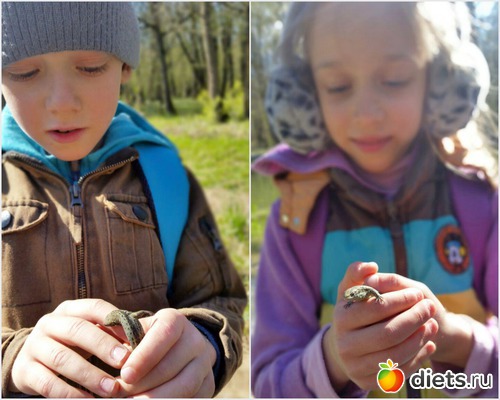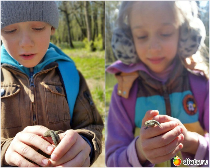 Отпустили, погуляли, и снова поймали ящерку. Ловцы аккуратные, хвостик цел!