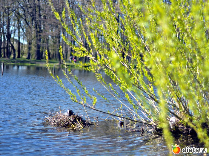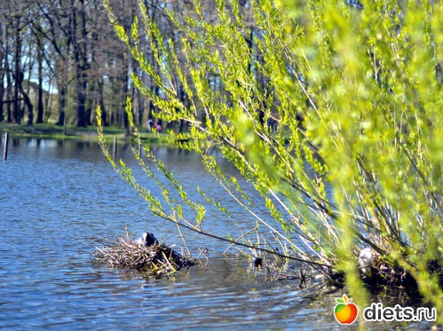 Дальше мы прогулялись к большому озеру, и подглядели за лысухой, высиживающей яйца.