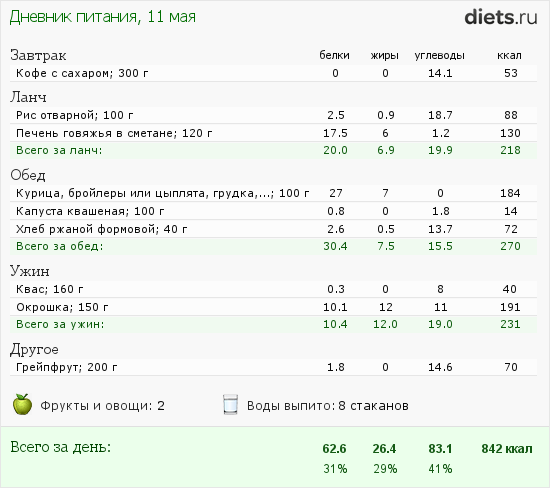 Вот посмотрите, мое меню за вчерашний день. Вроде бы все в норме должно быть
