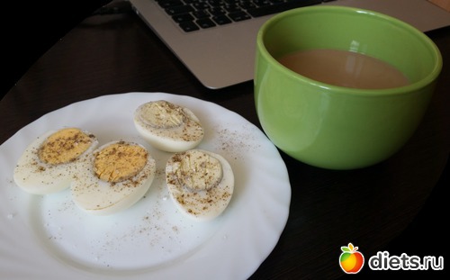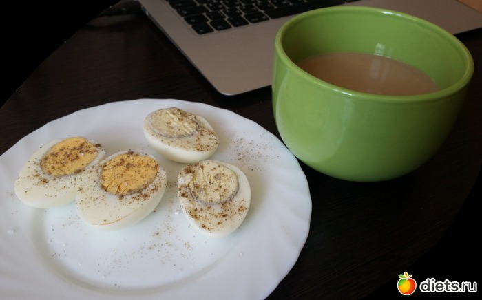 Это завтрак и обед. Об ужине пока даже не думала. В перерывах пью кофе, чай, воду... Думаю о Магги - в свое время она мне неплохо помогла, но боюсь навредить организму.