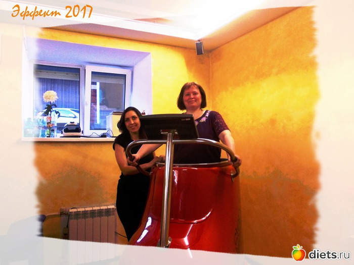 Второй день хожу на выигранный фитнес для ленивых в клуб "Эффект". В первый день я занималась на роликовом массажере и вакустепе. Роликовый массаж - это типа кресло, у которого вместо сидения - вращающийся барабан из буковых роликов. К этим вращающимся роликам ты прислоняешься своими проблемными частями. На фотографиях видно, как я извиваюсь всем тельцем, сидя на роликовом массажере. В итоге стимулируется кровообращение и насыщение тканей кислородом, ускоряется обмен веществ и пропадает целлюлит. Исчезает отечность, уменьшаются объемы тела. Субъективные ощущения: ВСЕ ВНУТРЕННИЕ ОРГАНЫ ВСТАЛИ НА СВОИ МЕСТА, словно у тебя внутри все упорядочилось.