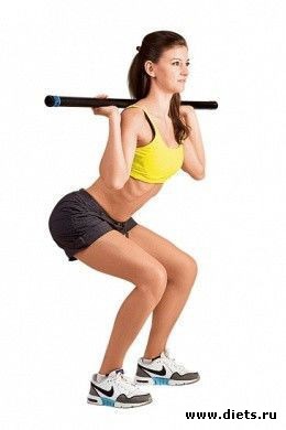 Для начала можно просто с палкой или бодибаром, потому как непростое упражнение. Ну и плечи в нем тоже хорошо задействованы.