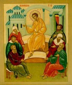 Когда Христу исполнилось 12 лет, Богородица и Иосиф взяли его с собой в Иерусалим, в Храм Божий, на праздник Кущей. Пошли они не одни, а со всей своей многочисленной роднёй. Когда, через три дня праздник окончился и все отправились обратно в Нозарет, Христос отстал от родни, а родители подумали, что Он разговорился с кем-то из родных и не стали искать Его. Но насколько же они были удивлены Родители, когда после окончания долгих Поисков Его, они возвращались домой и увидели Христа, сидевшего вокруг умудрённых жизнью старцев, и как равный Он общался с ними. Старцы задавали ему многие вопросы и Он очень достойно отвечал им, а и сам задавал очень достойные вопросы.