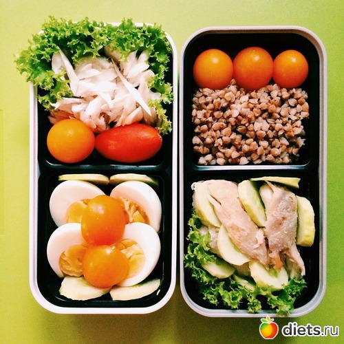 Обед:Мясо, гречка,салат без соли с лимонным соком.