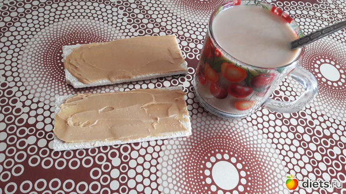 Перекус - два хлебца с арахисовой пастой + кофе с молоком