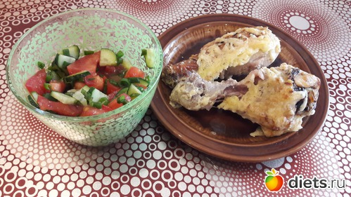 Ужин - курица под сыром + овощной свежий салат
