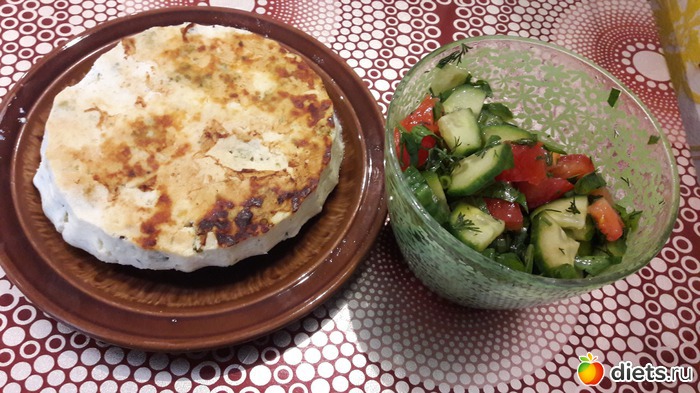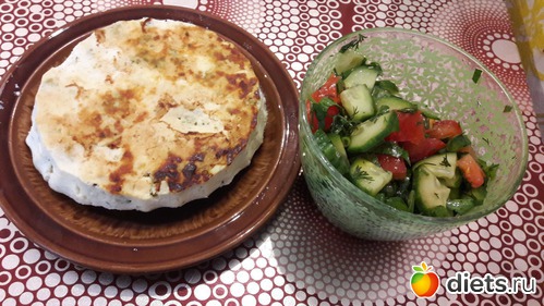 Ужин - творожная запеканка с брокколи 250г + салат из свежих овощей